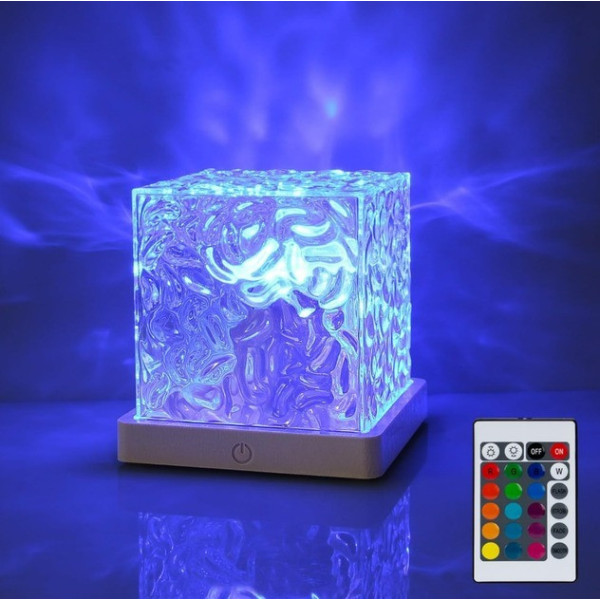 Нічник Куб з ефектом водяної хвилі — стильний декоративний світильник, який створює атмосферу затишку та розслаблення в будь-якому приміщенні. Завдяки RGB-підсвітці з 16 кольорами і функції димера, ви зможете настроїти освітлення під настрій або інтер'єр.