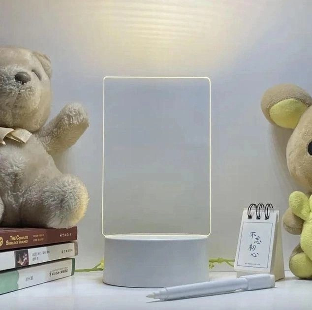 Нічник-планер з LED-підсвіткою і прозорою акриловою дошкою — стильне та функціональне рішення для творчості, планування та прикрашання інтер'єру. До комплекту входить спеціальний дрібновий маркер, за допомогою якого можна залишати яскраві нотатки, послання або малюнки на дошці. Підсвітка працює в трьох режимах: біле, тепле та м'яке світло, створюючи затишну атмосферу та підкреслюючи нанесені написи.