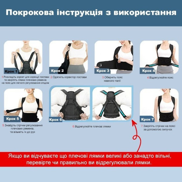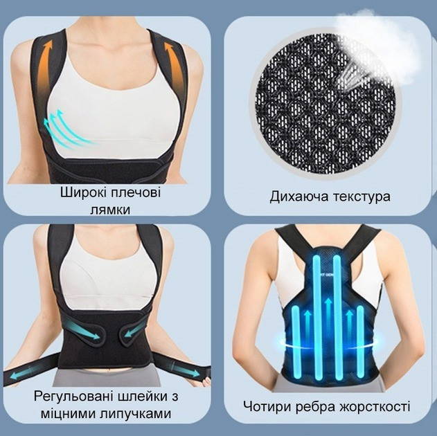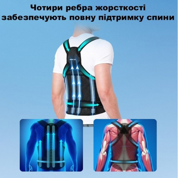 Регульовані ремені забезпечують індивідуальну посадку для будь-якої фігури, а універсальний розмір підходить дорослим, підліткам та дітям. Коректор практично непомітний під одягом, що робить його комфортним для постійного носіння. Постійне використання знижує втому, покращує самопочуття й профілактично захищає хребет від проблем із поставою.