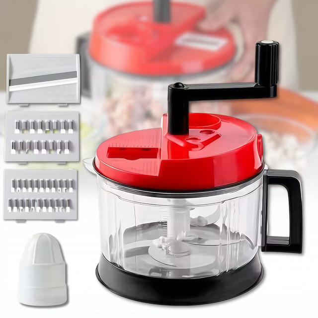 Овочерізка та кухонний подрібнювач BIG MAC AND LY-974 з ручним приводом і 5 лезами — механічна овочерізка 3 л для нарізання