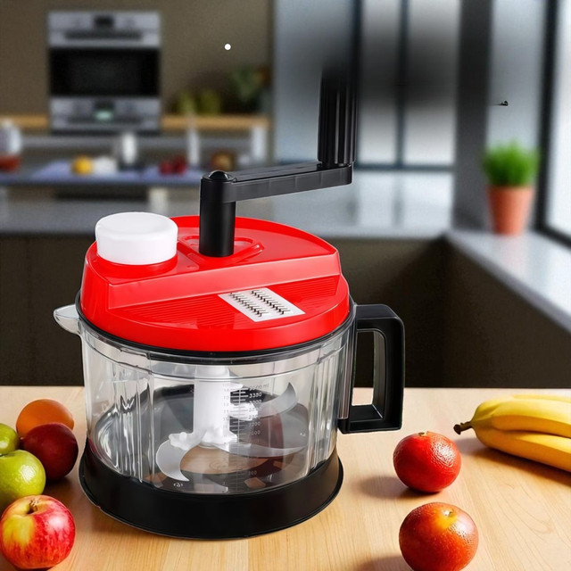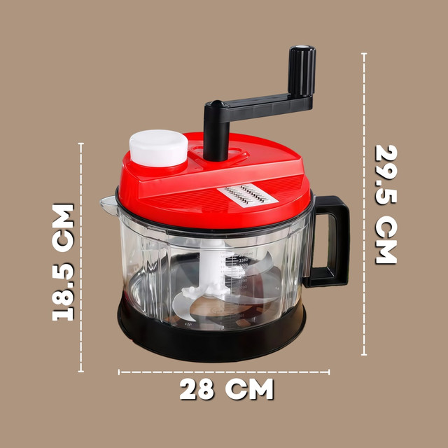 Місткість чаші 3 літри дає змогу за один раз нарізати велику кількість інгредієнтів, а прозорий корпус допомагає контролювати процес подрібнення. Ергономічна ручка та стійка нековзна основа забезпечують комфорт і безпеку під час роботи.