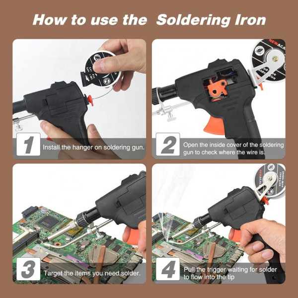 Такий паяльник ідеально підходить для ремонту електроніки, побутової техніки, радіоапаратури, моделювання або будь-яких дрібних технічних робіт, де важлива точність і контроль. Завдяки поєднанню двох функцій — нагріву та подачі олова — інструмент підвищує ефективність роботи та знижує втому під час тривалого використання.