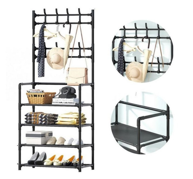 Під одягом на полицях вішалки зручно зберігати взуття, аксесуари та інші предмети.