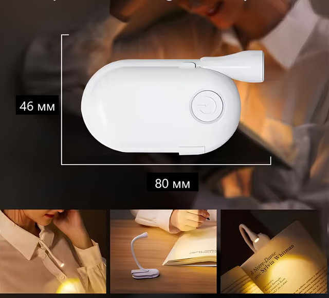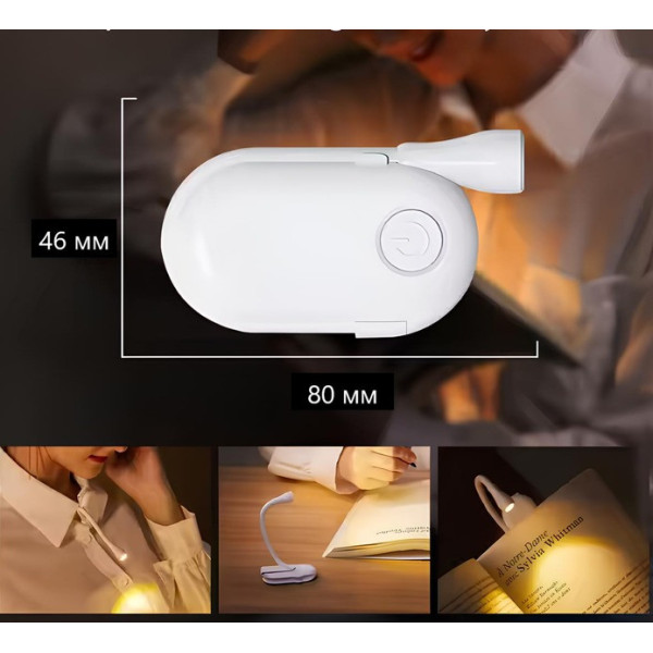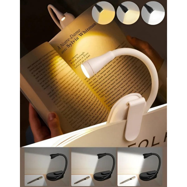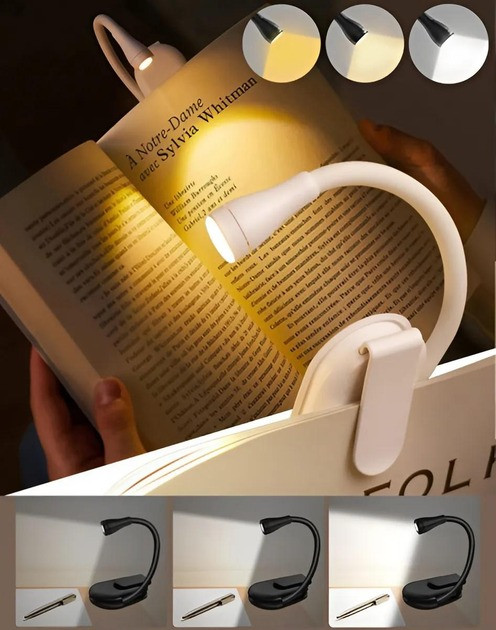 Мінілампа для читання книг із прищіпкою — компактний і зручний світильник, створений для комфортного читання в будь-яких умовах. Гнучкий ліхтарик із регульованою яскравістю і трьома відтінками світіння дає змогу настроїти світло під індивідуальні переваги. Прищіпка забезпечує надійне кріплення до обкладинки книги, сторінок, плоских предметів або коміра одягу.