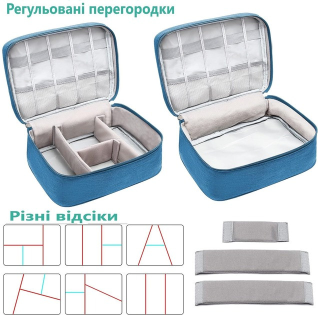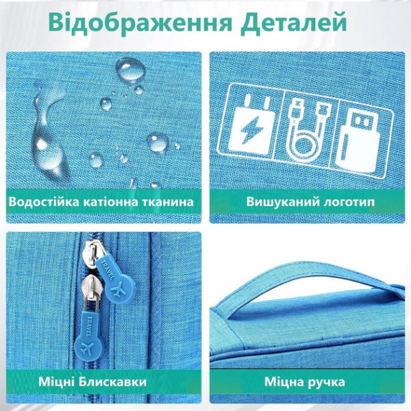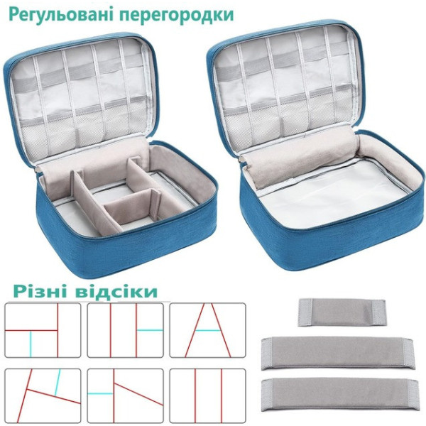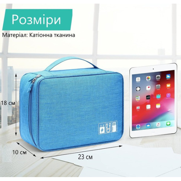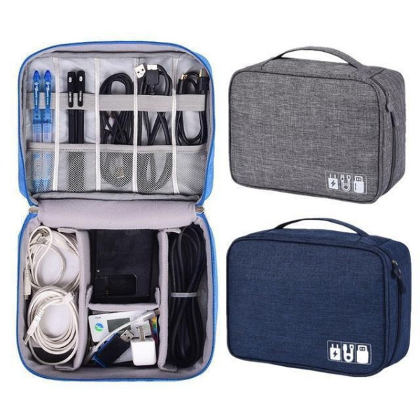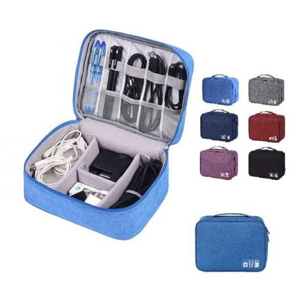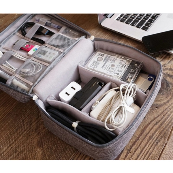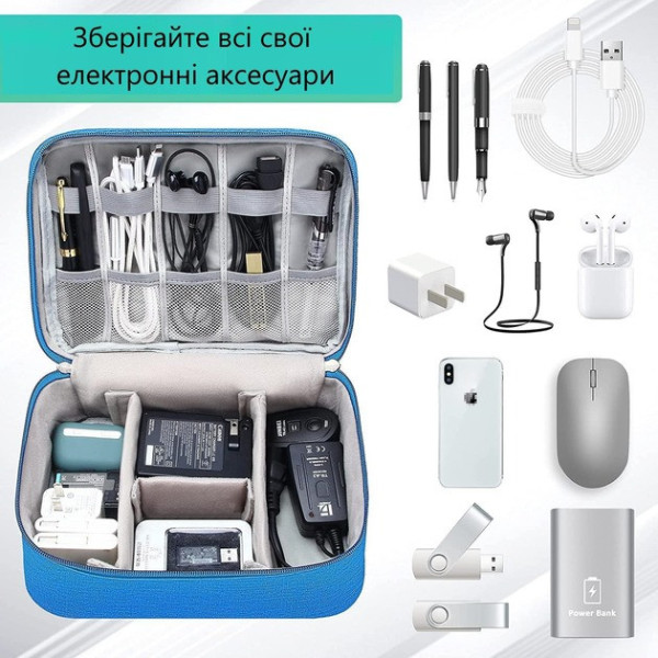 Портативна дорожня сумка-органайзер — це практичне та зручне рішення для зберігання і транспортування цифрових аксесуарів. Вона створена спеціально для акуратного розміщення зарядних пристроїв, кабелів, адаптерів, навушників, флешок, SD-карт та інших дрібних комплектуючих техніки, допомагаючи підтримувати лад і економити місце.