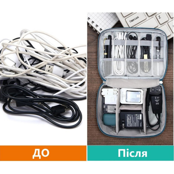 Портативний органайзер для кабелів і зарядок — це зручний і надійний аксесуар, який допомагає підтримувати лад у ваших пристроях і аксесуарах як удома, так і в поїздках.