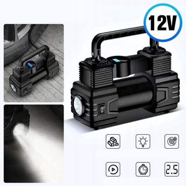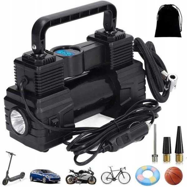 Завдяки поліпшеним металевим компонентам двигун працює швидше та тихіше, забезпечуючи стабільний потік повітря й захист від перегрівання. Компактні розміри та сумка для перенесення роблять компресор зручним у зберіганні та транспортуванні.