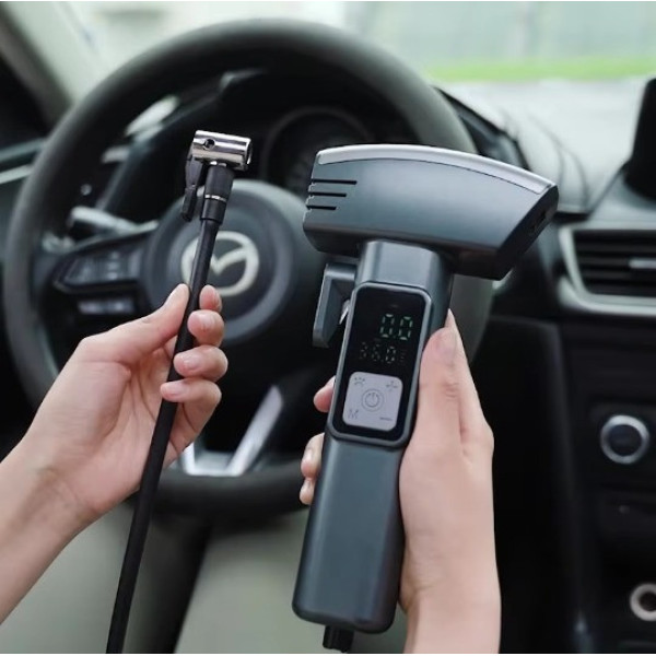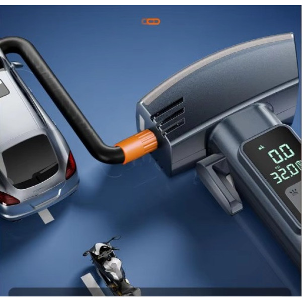 Багатофункціональний автомобільний насос поєднує в собі компактність, потужність і безпеку. Пристрій автоматично визначає тиск у шинах і зображає точні дані на LED-дисплеї в реальному часі. Завдяки функції попереднього встановлення тиску та режимам для авто, мотоцикла, велосипеда та м'яча забезпечується точне та швидке накачування без зайвих зусиль.