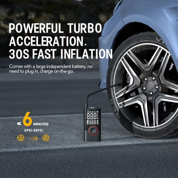 Компактний і зручний автомобільний інфлятор призначений для швидкого та точного накачування шин, надувних матраців, м'ячів та інших надувних виробів. Пристрій поєднує в собі портативність, малий рівень шуму (<50 дБ) і просте керування через СІД-дисплей, який зображає поточний тиск у шинах.