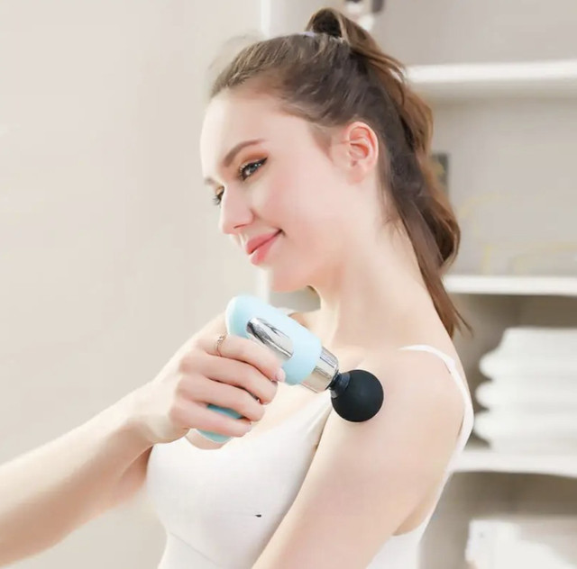 Пристрій обладнаний акумулятором, який забезпечує до 3 годин безперервної роботи, і дисплеєм для зручного керування. Ергономічна форма пістолета дає змогу комфортно використовувати масажер на будь-яких ділянках тіла — спина, шия, плечі, руки, ноги, сідниці, стопи.
