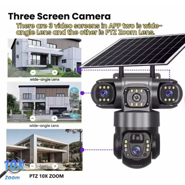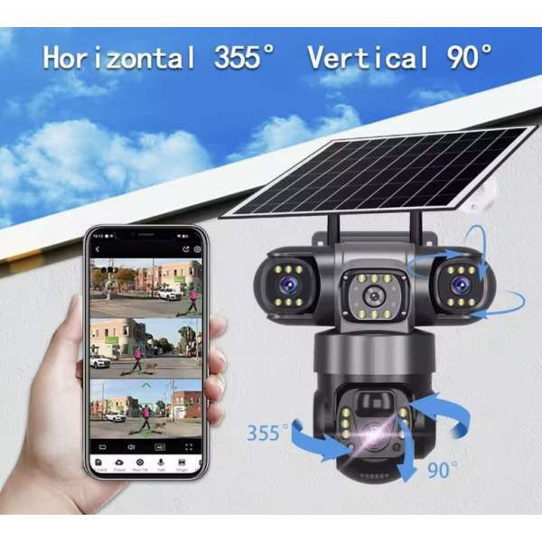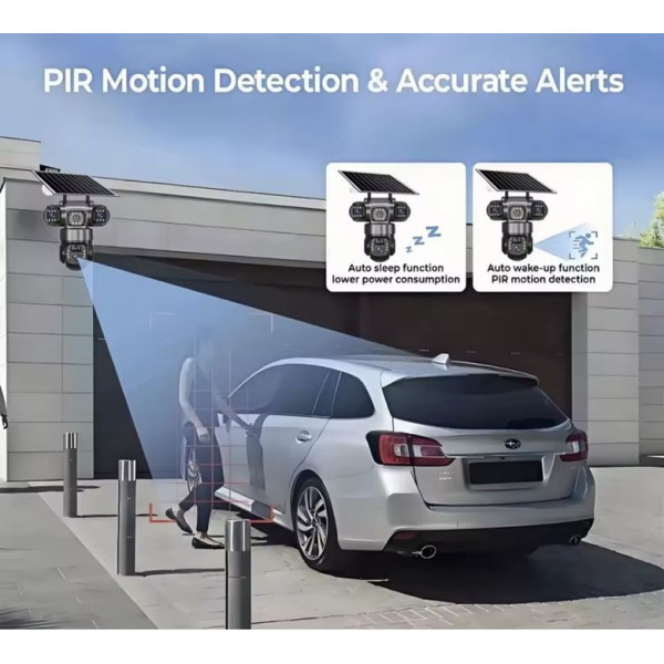 Повністю автономна камера відеоспостереження з двома об'єктивами забезпечує цілодобовий огляд на 360° без мертвих зон. Головна перевага пристрою — повна незалежність від електроенергії. Завдяки вбудованому акумулятору на 10000 mAh і сонячній панелі на 7 Вт камера може працювати безперервно, а в екорежимі — до 72 годин.