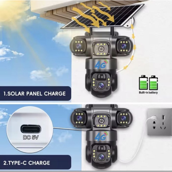Повністю автономна 4G камера відеоспостереження V380Pro з двома об'єктивами, сонячною панеллю й акумулятором 10000mAh