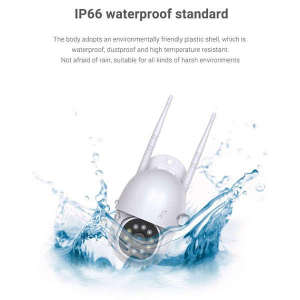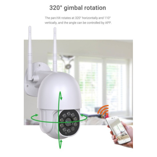 Камера обладнана функцією нічного бачення з ІЧ і LED-підсвіткою, що дає змогу отримувати чітке зображення навіть у повній темряві. Вбудовані мікрофон і динамік забезпечують двобічний аудіозв'язок, а інтелектуальний датчик руху автоматично починає запис у разі виявлення активності.