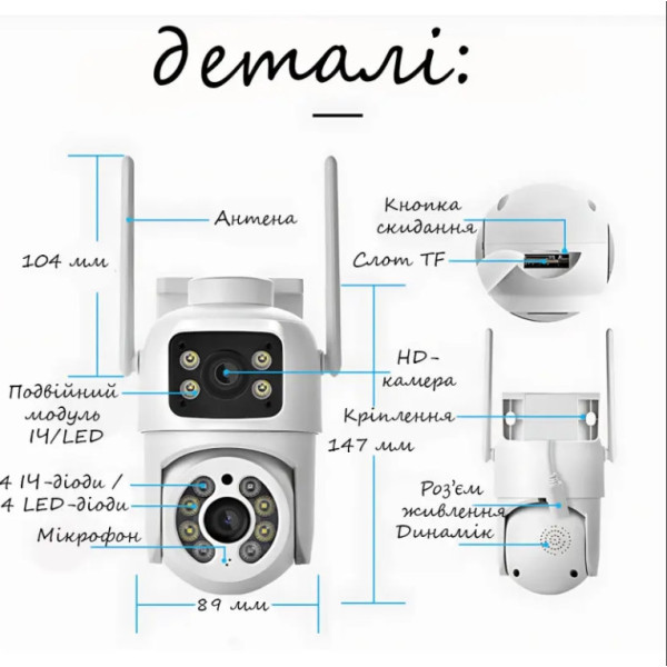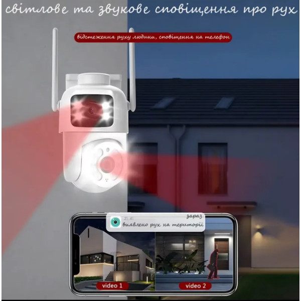Поворотна Wi-Fi камера відеоспостереження Q13 з двома лінзами 2×3MP і нічним баченням до 40 м для вулиці та дому
