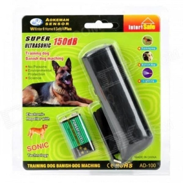 AD-100 (CD-100) — це відлякувач собак у формі кишенькового ліхтарика, який ефективно захищає від нападу бродячих тварин — одинок або стаї. Пристрій від собак працює на частоті 20000-25000 kHz, яка не помітна людським вухом, зате відлякує агресивних собак. Звуковий ефект доповнюється миготінням двох світлодіодів, які в режимі світла слугують яскравим ліхтариком.