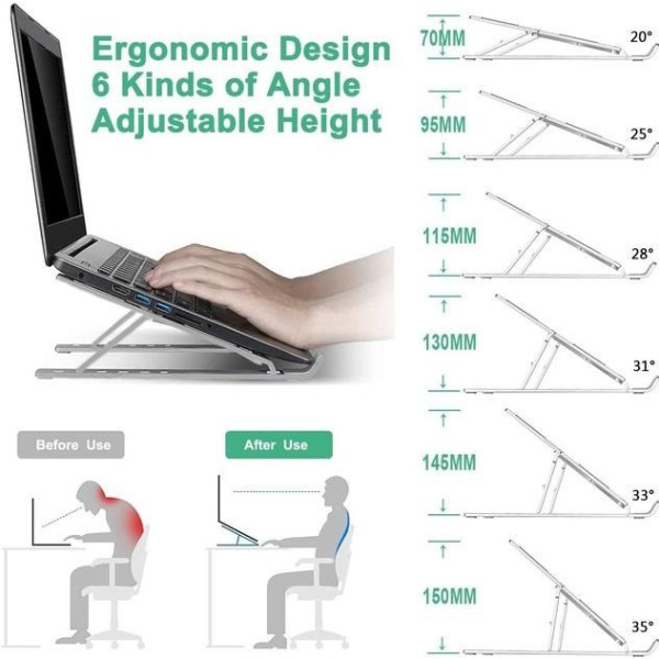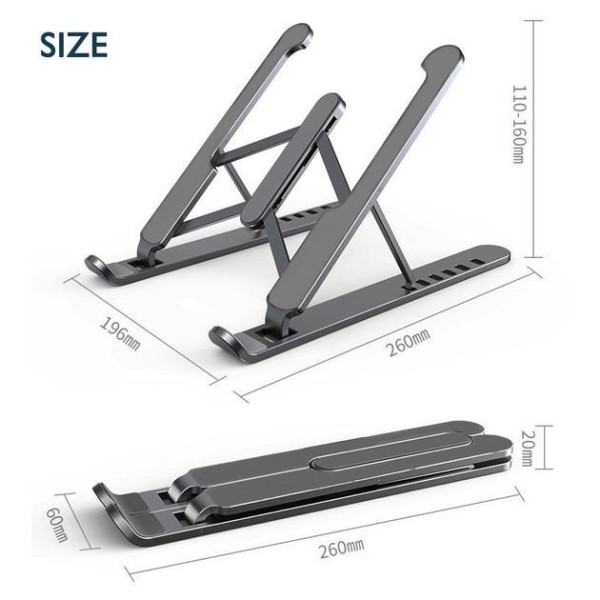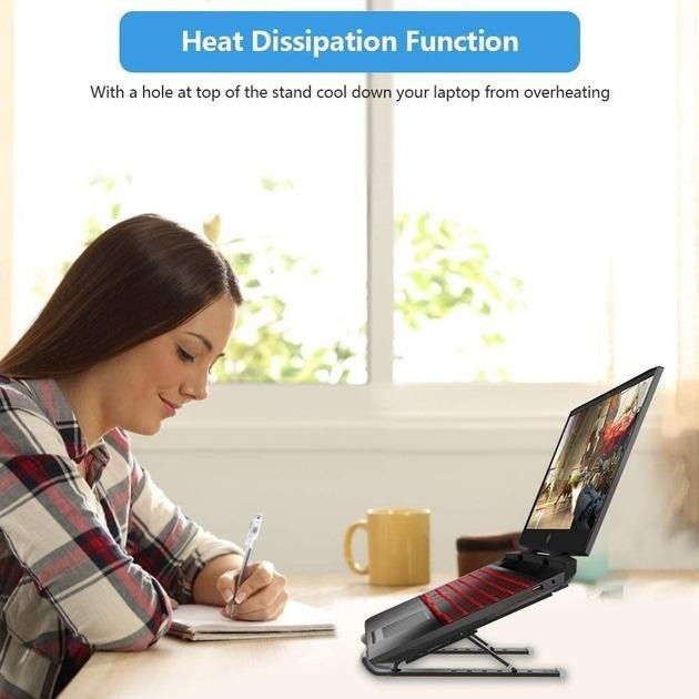 Регульована підставка Laptop Stand — зручне та практичне рішення для комфортної роботи за ноутбуком вдома, в офісі або в подорожі. Підставка дає змогу змінювати висоту та кут нахилу, знижуючи навантаження на шию, спину та очі.