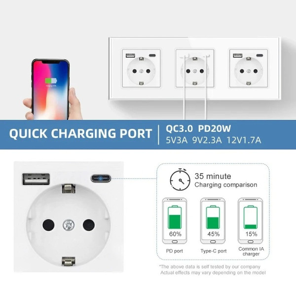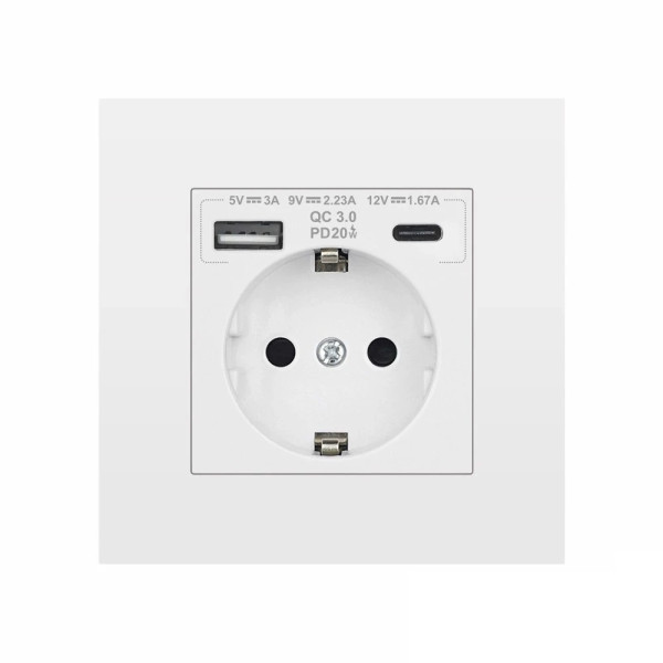 Розетка Folem RZ1 з USB і Type-C, швидка зарядка QC3.0, 220V, настінна, біла