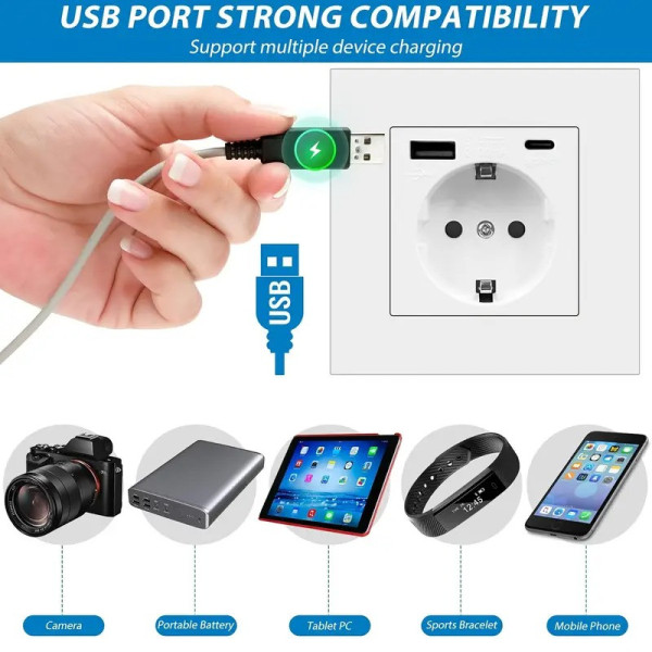 Електрична розетка Folem RZ1 з портами USB і Type-C — сучасне рішення для зручного й безпечного заряджання ваших пристроїв. Тепер немає потреби використовувати додаткові адаптери: два порти USB і Type-C дають змогу одночасно заряджати смартфони, планшети, навушники та інші ґаджети.