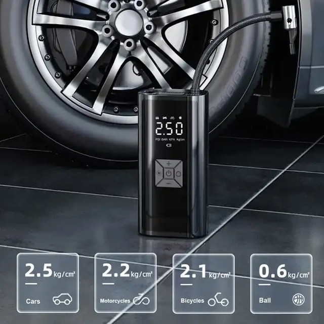 Многофункциональность: Идеален не только для автомобильных шин, но и для велосипедов, мотоциклов, мячей, надувных игрушек и других спортивных аксессуаров. Просто переключите режим и накачивайте!