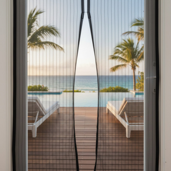 "Magic Mesh" охватывает всю площадь дверного проема, исключая, тем самым возможность проникновения самых мелких тварей в ваш дом. При этом, вы можете легко проходить через неё. Распашные половинки сетки, под весом магнитов быстро возвращаются на место и закрывают проход.