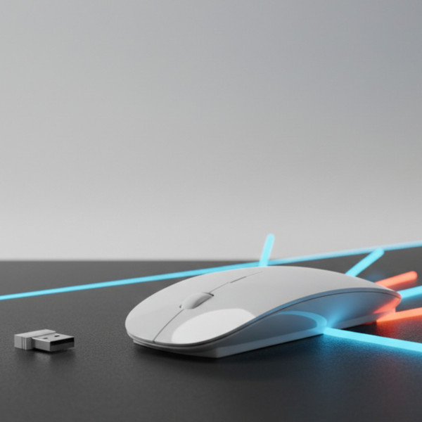 Мышка работает по технологии 2.4 GHz, обеспечивая стабильное соединение без задержек. Для подключения не требуется установка драйверов — достаточно вставить компактный USB-ресивер, который хранится прямо в корпусе. Устройство поддерживает работу практически на любых поверхностях, включая столешницы и даже ковровое покрытие.