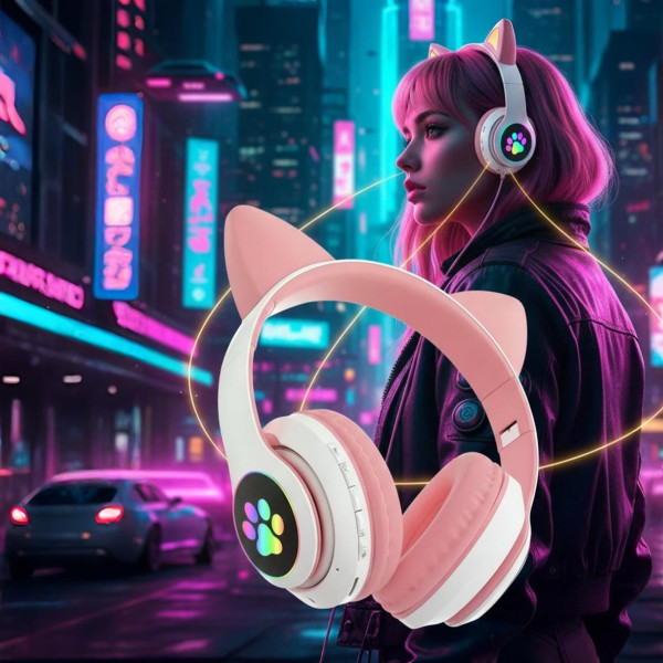 - Модель: Cat STN-28 (Wirless Cat Ear LED Over Ear 5.0 Bluetooth Dual Connection RGB Bass Stereo Noise-cancelling Headphones with Mic)