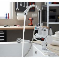 Проточный водонагреватель RX-011-1 , бойлер с экраном хромированный пластик с дисплеем