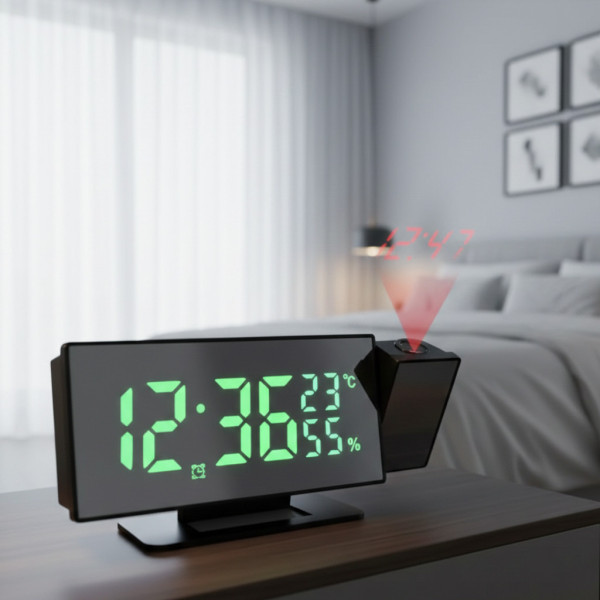 Электронные настольные часы VST-896S-4 станут удобным и современным аксессуаром для вашего дома или офиса. Они оснащены ярким зелёным LED-дисплеем, который хорошо виден даже в полной темноте, и функцией проекции времени на стену или потолок, что делает использование ещё более комфортным.