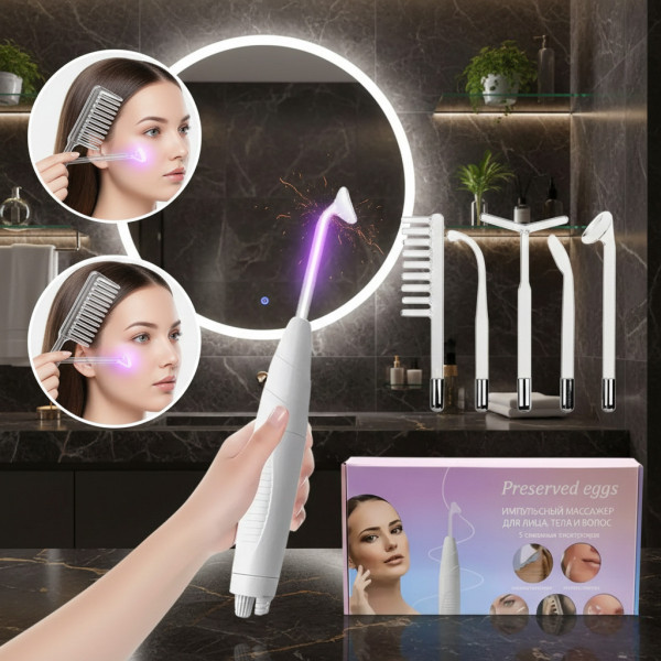Прибор укомплектован 5 насадками, что делает его универсальным для различных процедур: лечение акне, снятие воспалений, разглаживание морщин, стимуляция роста волос, улучшение тонуса кожи и лимфодренаж. Дарсонваль позволяет добиться салонного эффекта в домашних условиях, экономя ваше время и деньги.