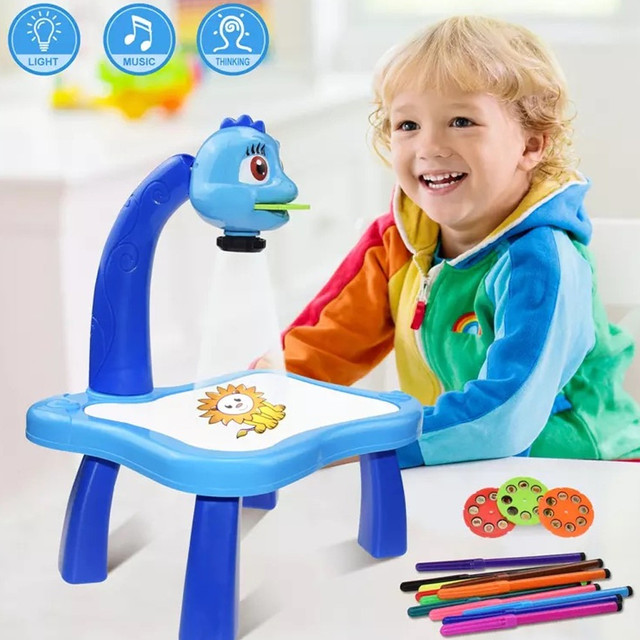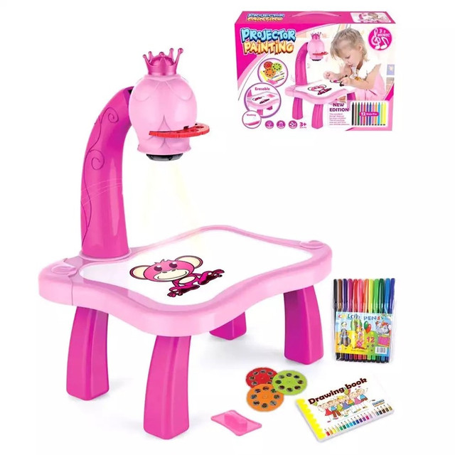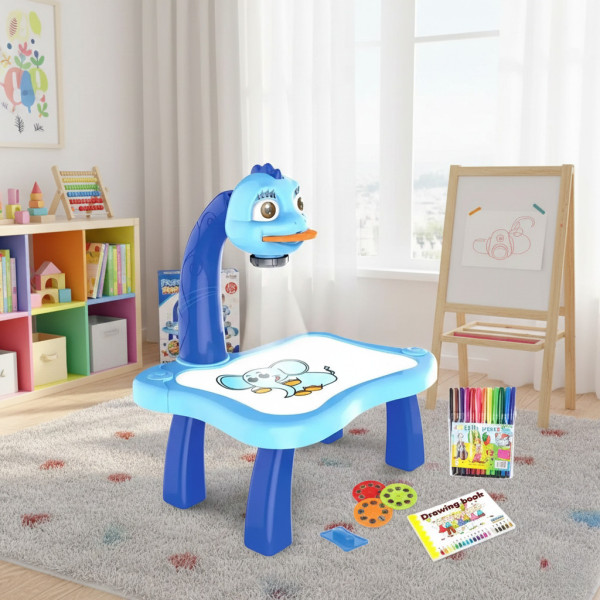 Детский обучающий светодиодный проектор для рисования Projector Painting c фломастерами и столиком, Стол для рисования детский с проектором и доской, Столик для ребенка + Комплект для рисования