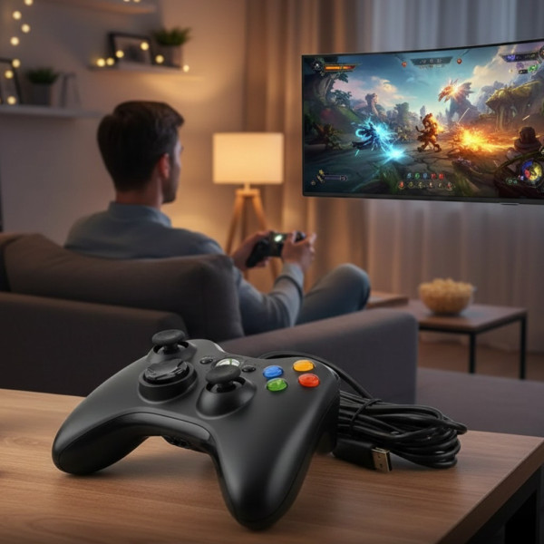 Геймпад для 360 оснащен кабелем диной 2,5 метра и отличается усовершенствованной эргономичной конструкцией. Расположенная в центре светящаяся кнопка запуска Guide предоставляет быстрый доступ к библиотекам цифровых видеозаписей, музыки и игр. Это хороший контроллер по гибкости использования, точности, управляемости, качеству и удобству. Проводной USB Controller (Xbox 360) совместим как с игровой консолью 360, так и с персональным компьютером. 360 Controller for Windows отлично подходит для подавляющего большинства современных игр от аркад и платформеров, до гонок и авиасимуляторов, а мягкий виброотклик позволит ощутить полное погружение в атмосферу происходящего на экране.