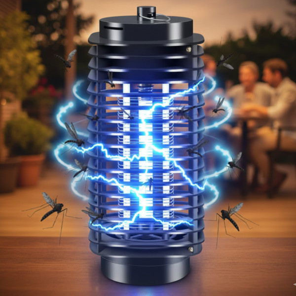 Летя к лампам насекомые неизбежно касаются сетчатую преграду под электрическим напряжением и погибают.