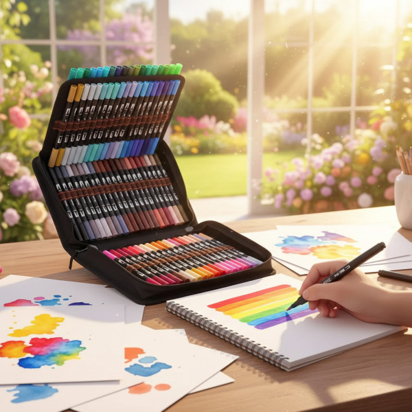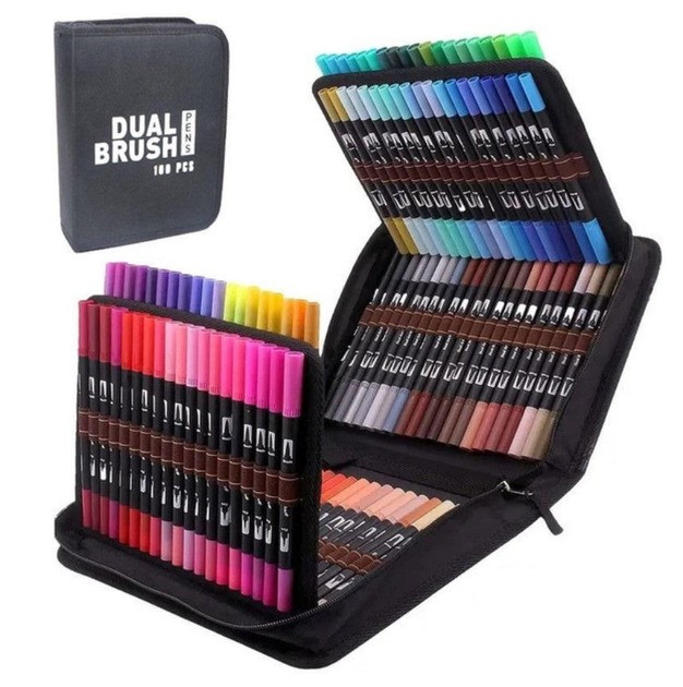 Маркеры двойные на водной основе набор 100 штук с кейсом для рисования