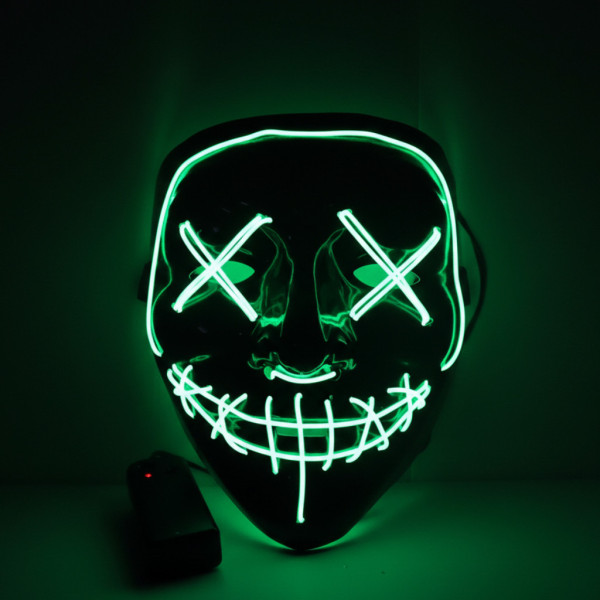 Неоновая обмотка, которая светится, придает маске загадочный и устрашающий вид.