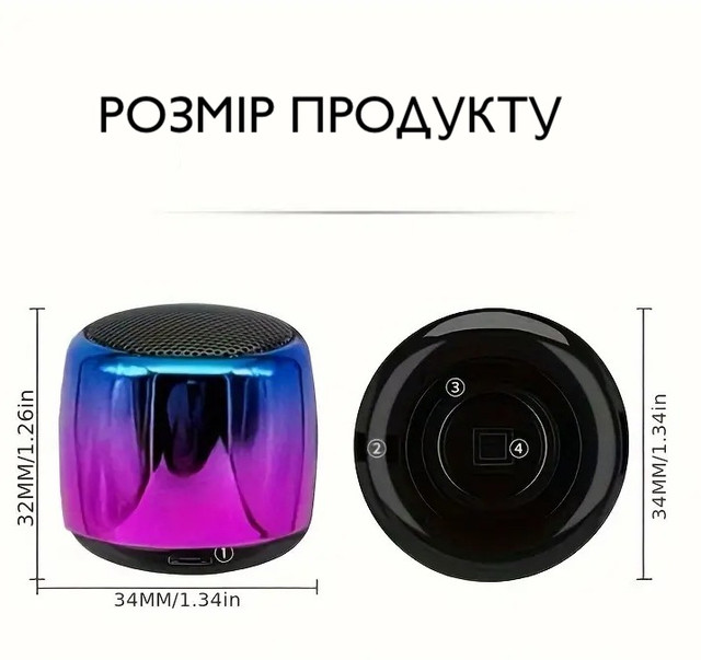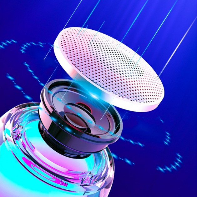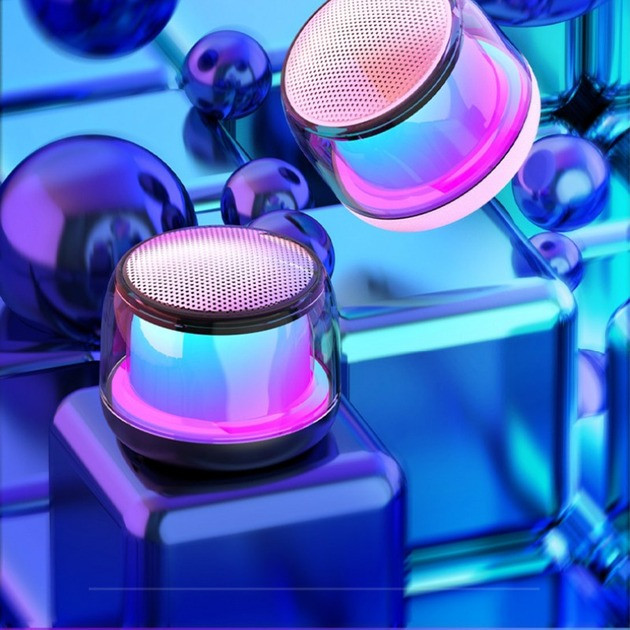 Миниатюрная портативная Bluetooth колонка с влагозащитой, эффектной синей и фиолетовой подсветкой