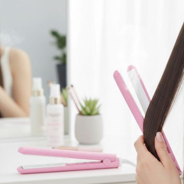 - Идеальный стиль волос с представленным выпрямителем.