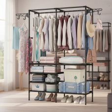 Напольная вешалка-органайзер для одежды и обуви J059 170×60×35 см металлическая стойка с полками черная