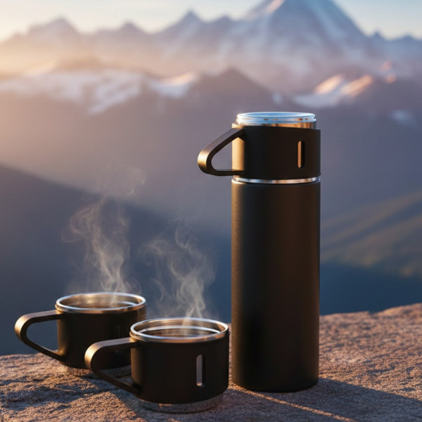 Термос с 3 кружками, из нержавеющей стали 500 мл в подарочном наборе