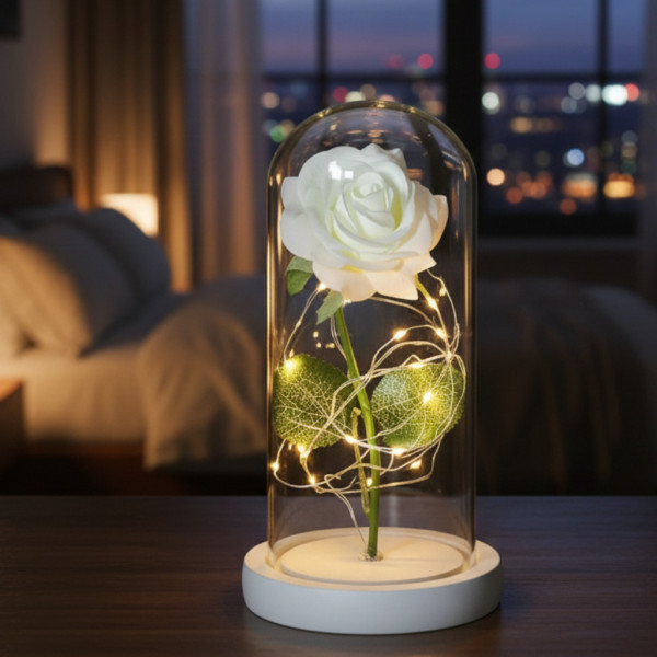 - Ночная лампа для релаксации – роза в колбе с подсветкой может быть использована для создания успокаивающей атмосферы, особенно перед сном или во время медитации.