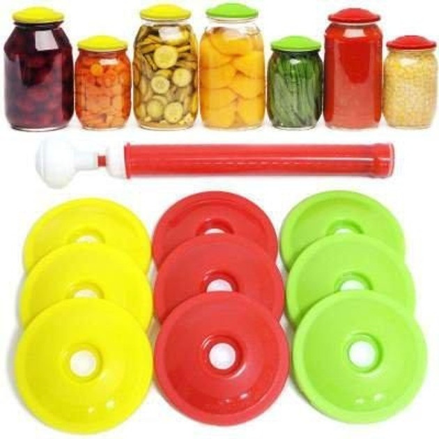 Вакуумные крышки для консервирования 9 штук с насосом Система вакуумного консервирования