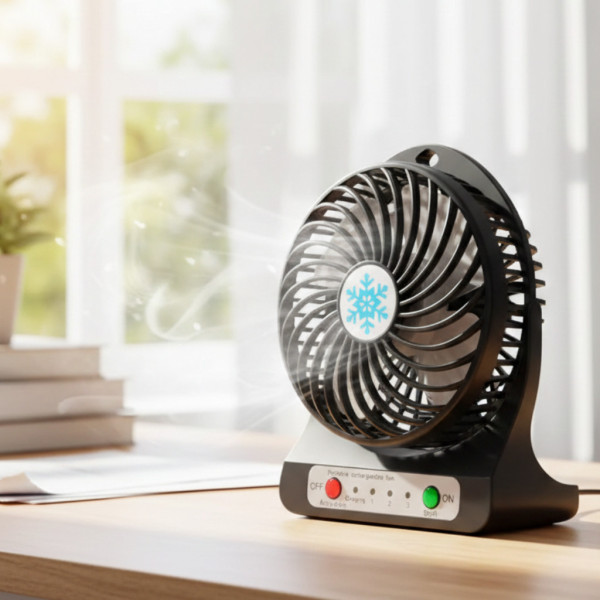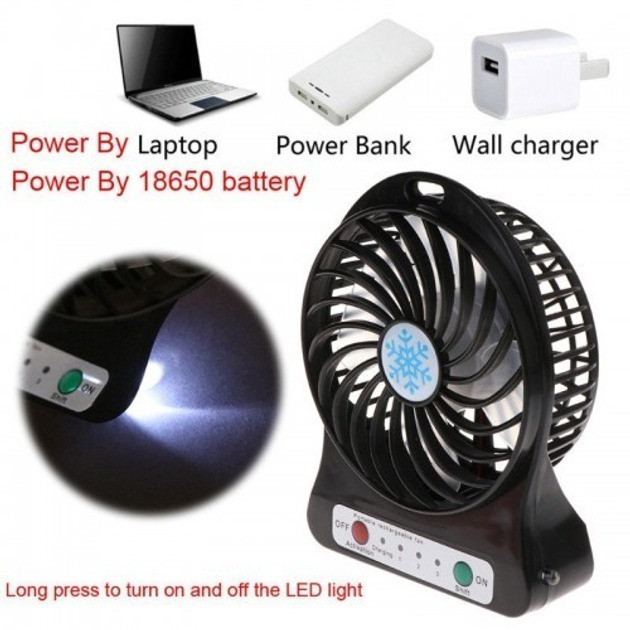 Портативный настольный вентилятор с аккумуляторной батареей станет настоящей находкой в душном офисе. Мощный воздушный поток, создаваемый устройством, позволяет с легкостью охладить пространство перед Вами на расстоянии до 1.5 метра, несмотря на небольшие размеры и вес вентилятора. Вы можете использовать вентилятор независимо от того, где Вы находитесь, в парке, путешествуя на открытом воздухе, будучи на учебе в школе.