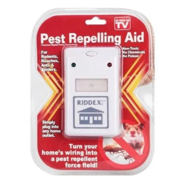 Отпугивающее устройство RIDDEX Pest Repelling Aid работает подобно ультразвуковым отпугивалелям, но принцип действия немного иной. А именно: Вы включаете отпугиватель грызунов и насекомых в розетку 220 V, устройство создает вокруг себя поле, условия которого не выносимые для вредителей. Отпугиватель вредителей Ридекс использует возможности электропроводки в помещении, превращая ее в репеллер, который работает мощнее ультразвуковых устройств.
