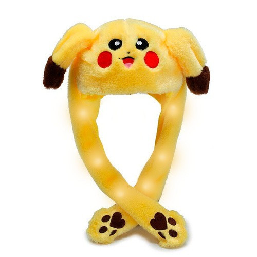 Шапка, що світиться, пікачу з вушками, що рухаються, універсальний розмір, шапка плюшева Pikachu покемон з підсвічуванням
