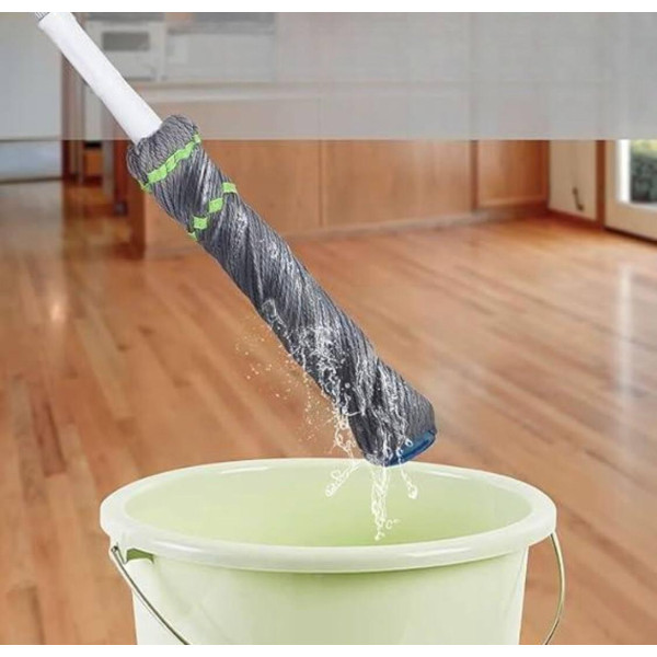 Самовіджимний механізм дає змогу вичавлювати насадку, не торкаючись руками брудної води, що робить прибирання максимально гігієнічною. Телескопічна ручка регулюється за довжиною, забезпечуючи комфортне використання за будь-якої висоти. Конструкція швабри виготовлена з міцного металу та пластику, що гарантує надійність і довговічність.