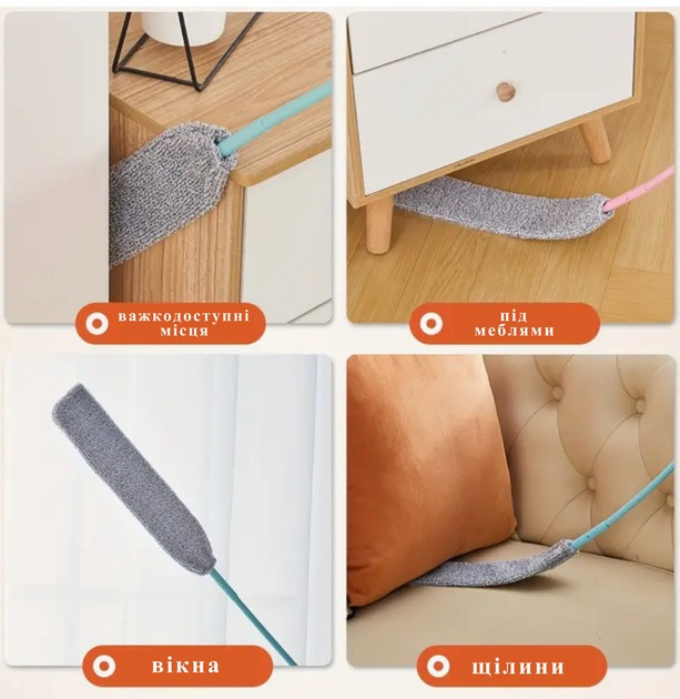 Тип: плоска швабра для прибирання під меблями та у важкодоступних місцях
