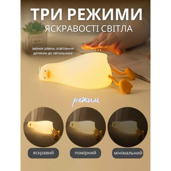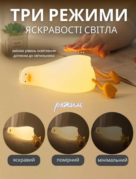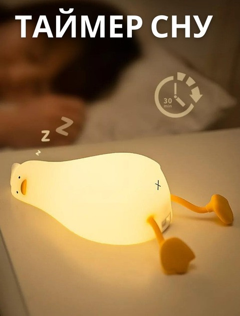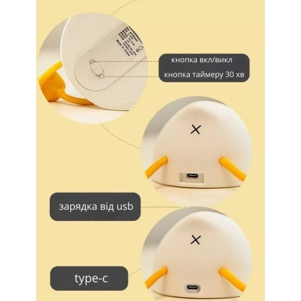 Нічник виготовлений із гіпоалергенного силікону, безпечного для дітей і дорослих. Він обладнаний двома режимами роботи: постійним і з таймером на 30 хвилин, який автоматично вимикає пристрій для економії заряду акумулятора.