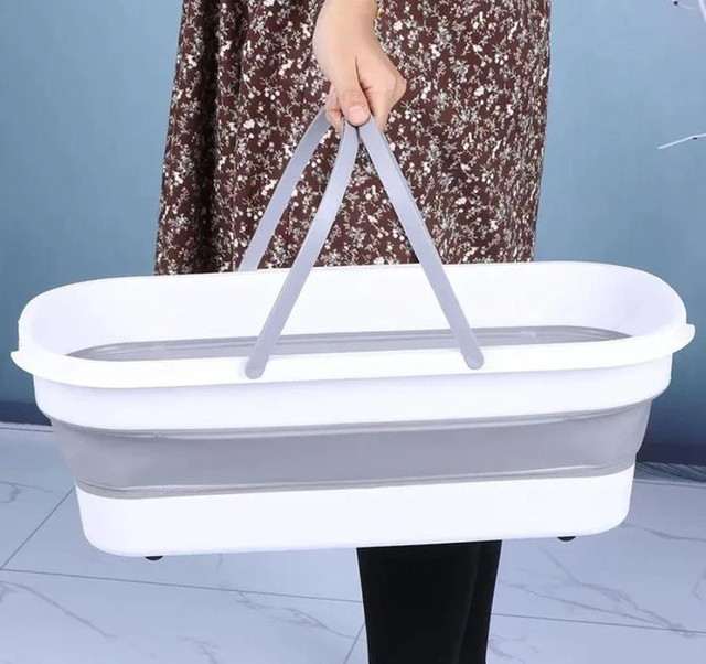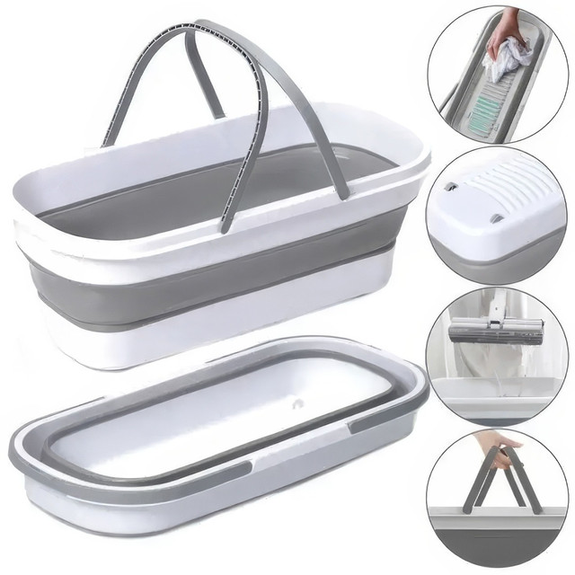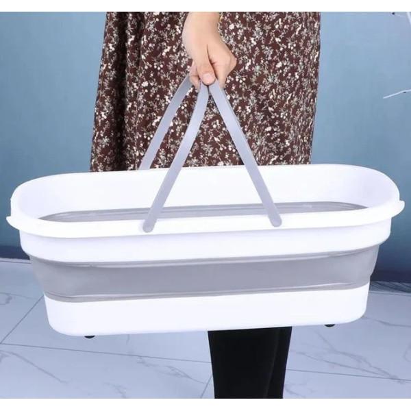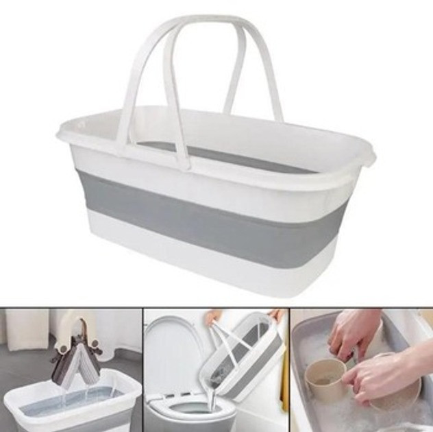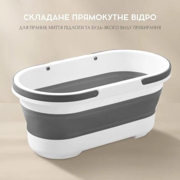Складане відро для прибирання та прання Barrel LY-630, силіконове відро з ручками 15 л сіро-біле