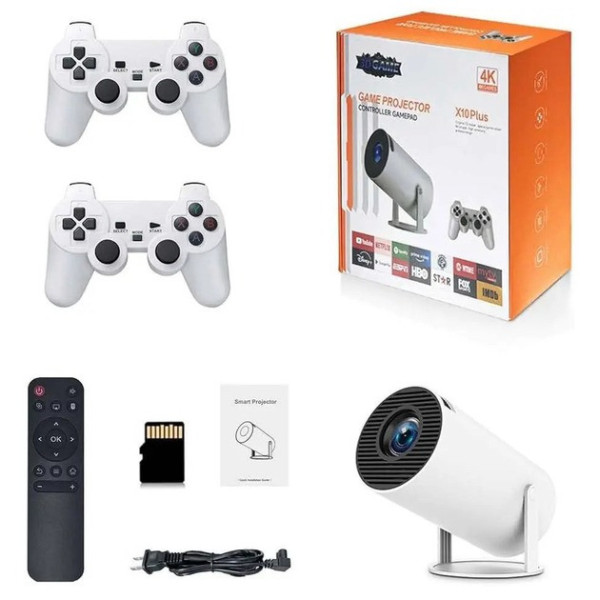 Смарт-проєктор X10 Plus — це пристрій 2 в 1, який об'єднує функції ігрової приставки та мультимедійного проєктора. Він забезпечує чітке та насичене зображення до 100 дюймів і ідеально підходить як для перегляду фільмів, так і для ретроігор.