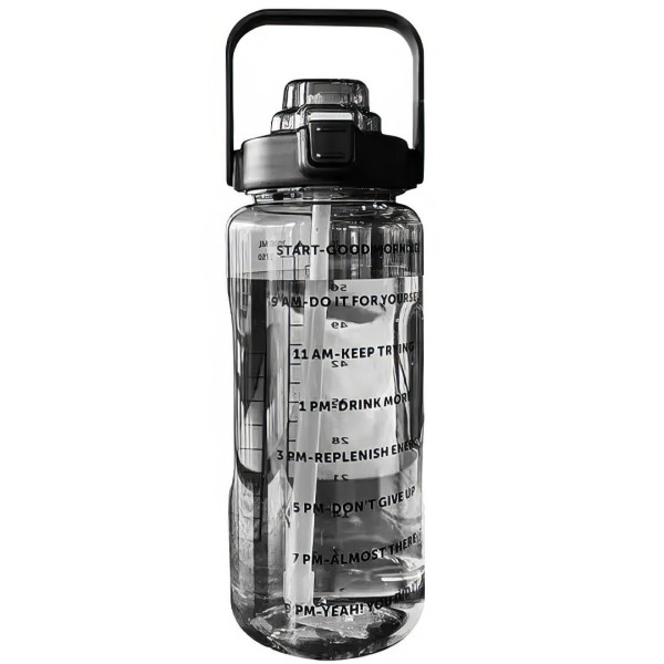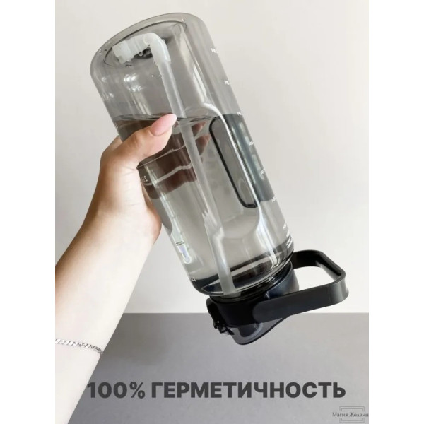 Спортивна пляшка для води 2 літри з трубочкою та ручкою, пластикова універсальна чорна