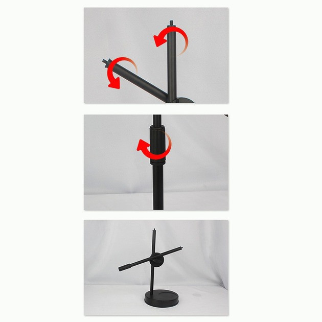 Штатив журавель для предметного знімання. Максимальна робоча висота штатива — 57.5 см. Зафіксувати телефон можна в тримачі, що йде в комплекті. Максимально можлива ширина екрана телефона до 8,5 см. У комплекті також йде шарнірний механізм, завдяки якому можна обертати телефон на 360 градусів.